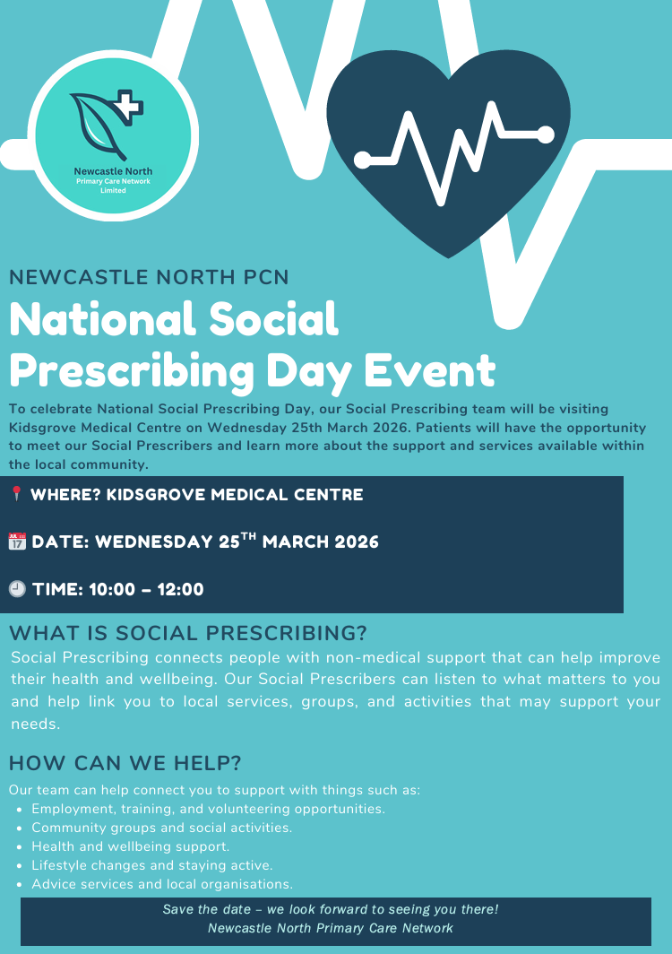 To celebrate National Social Prescribing Day, our PCN Social Prescribers and lots of different organisations will be available for our patients to speak to about our services and the many community services and support available locally that can help improve your health and wellbeing.